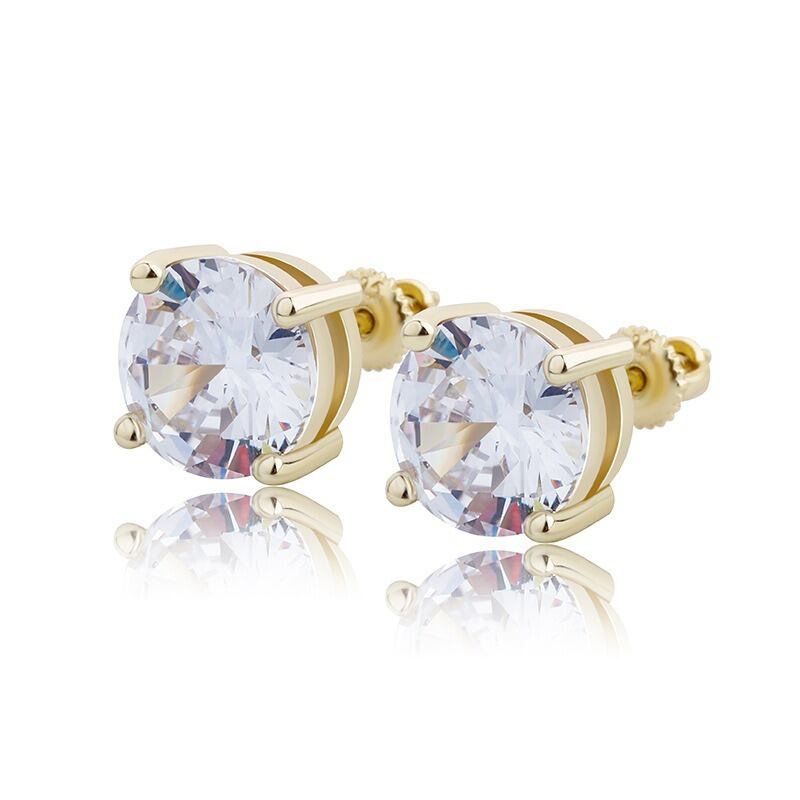 s925 Round Cut Stud Earrings 6,7,8,10mm 【Gold/Moissanite】