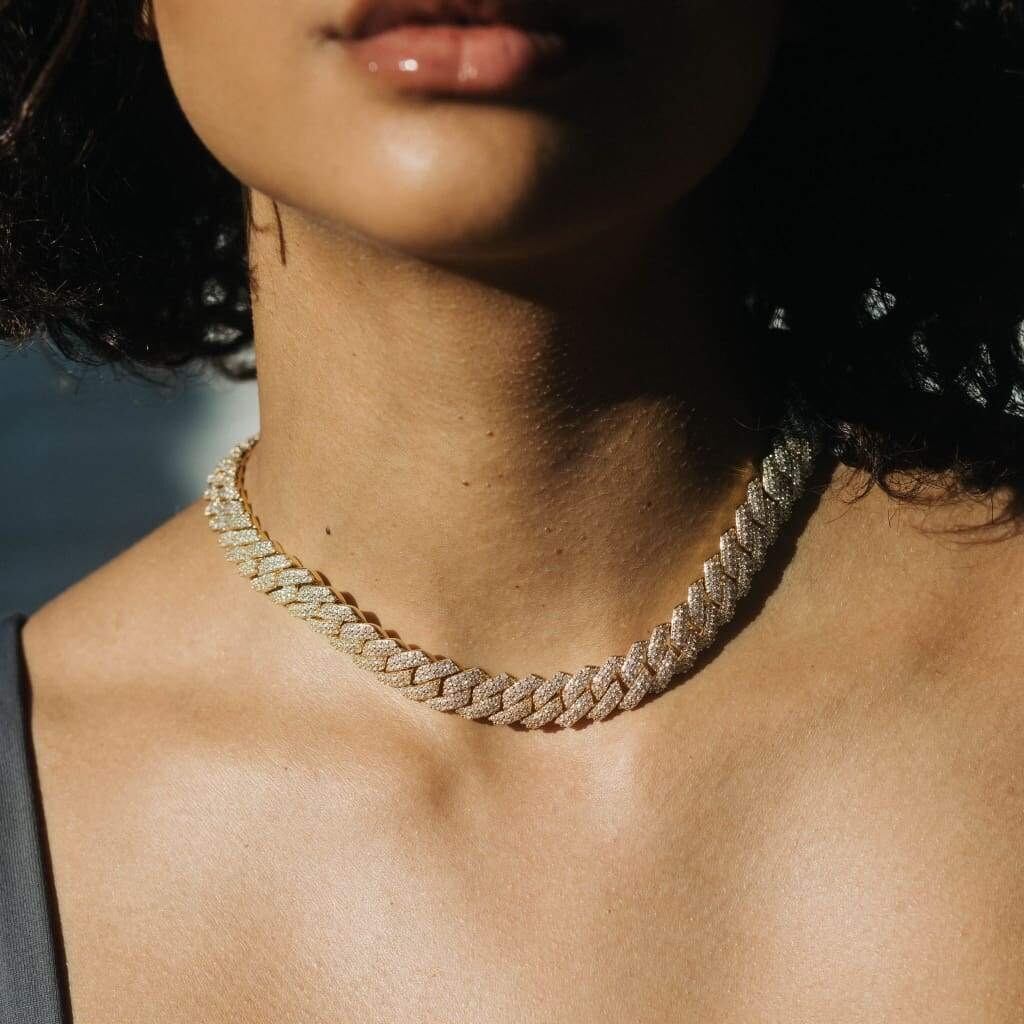 s925 Iced Out Prong Chain Necklace 【14mm / Moissanite】